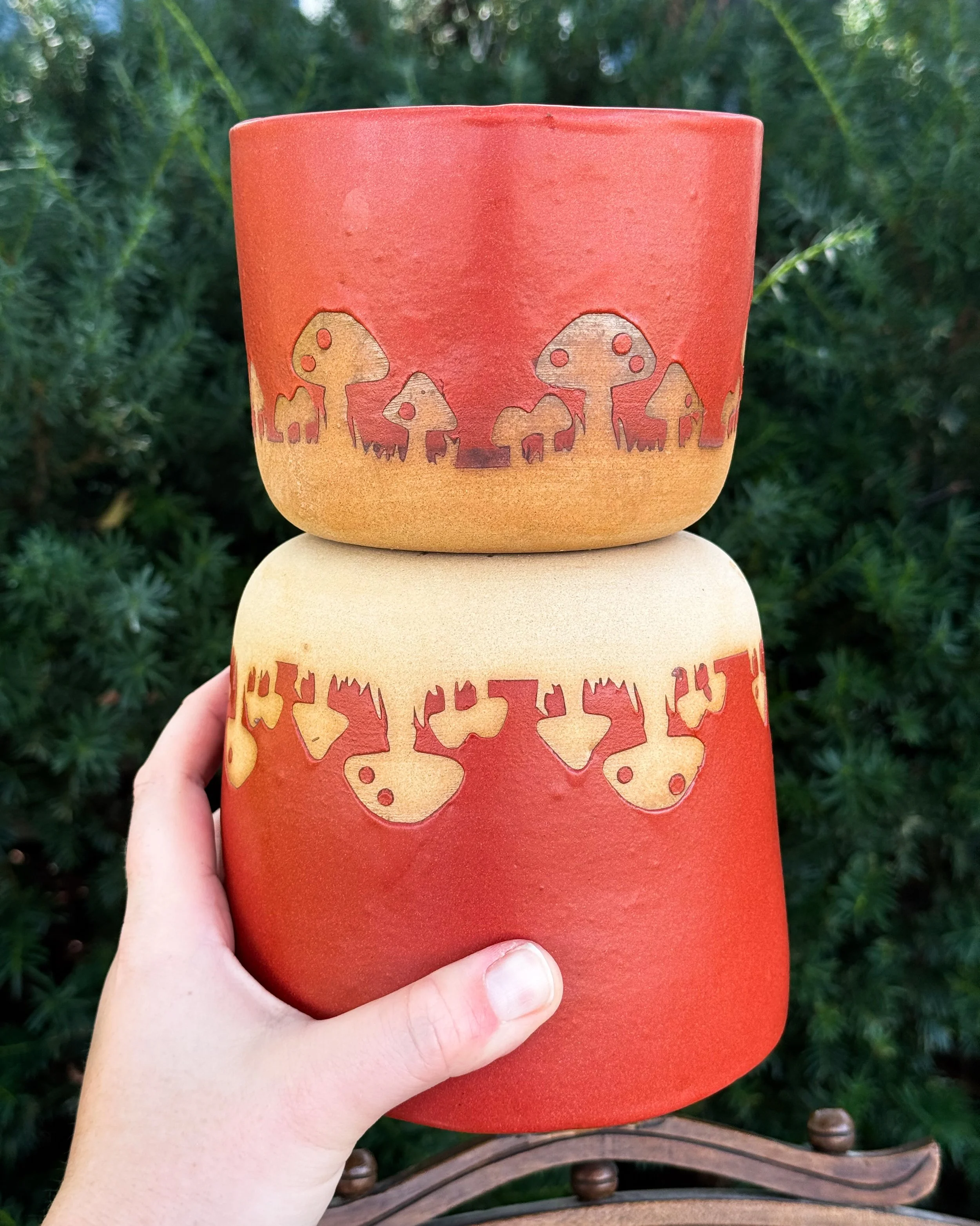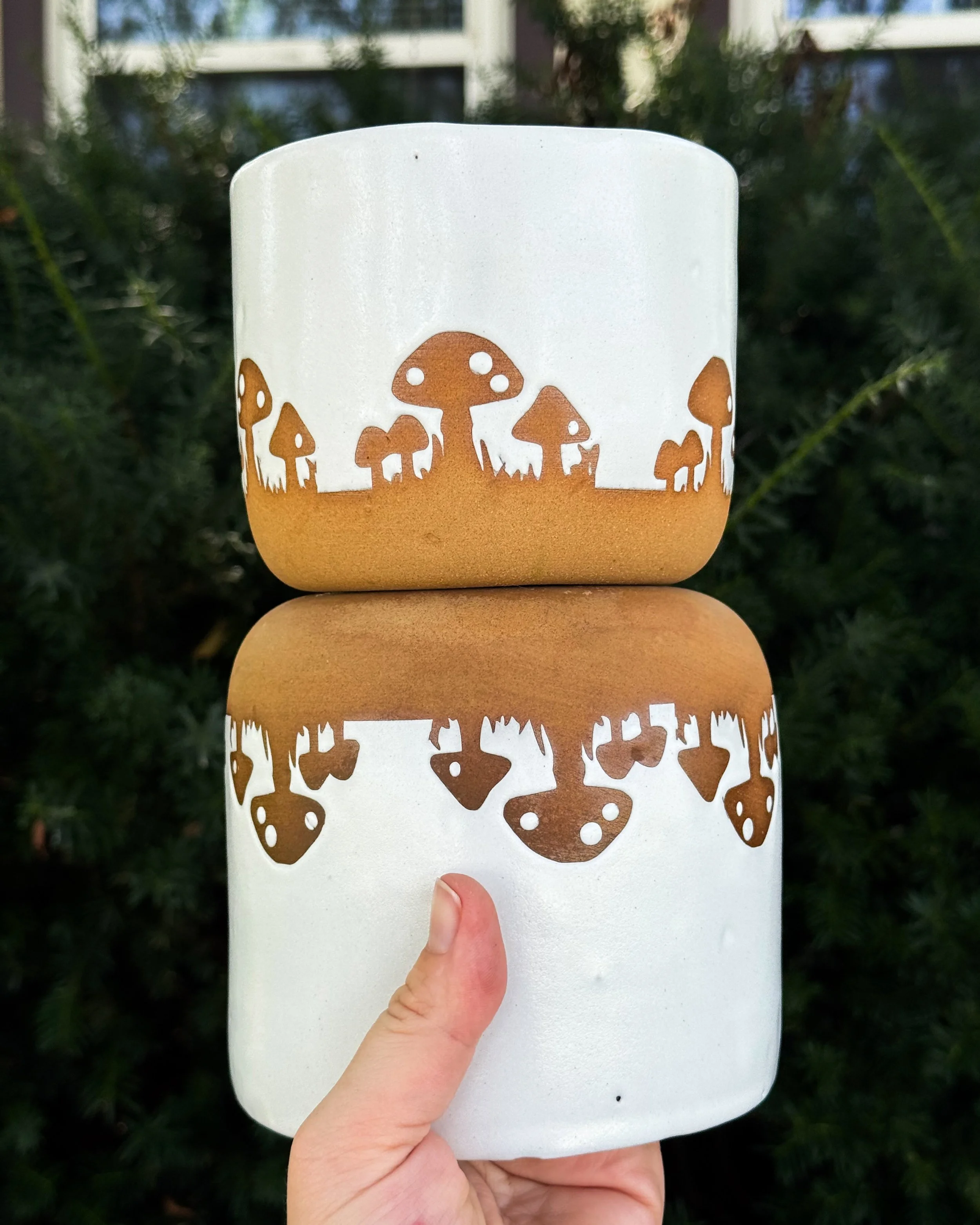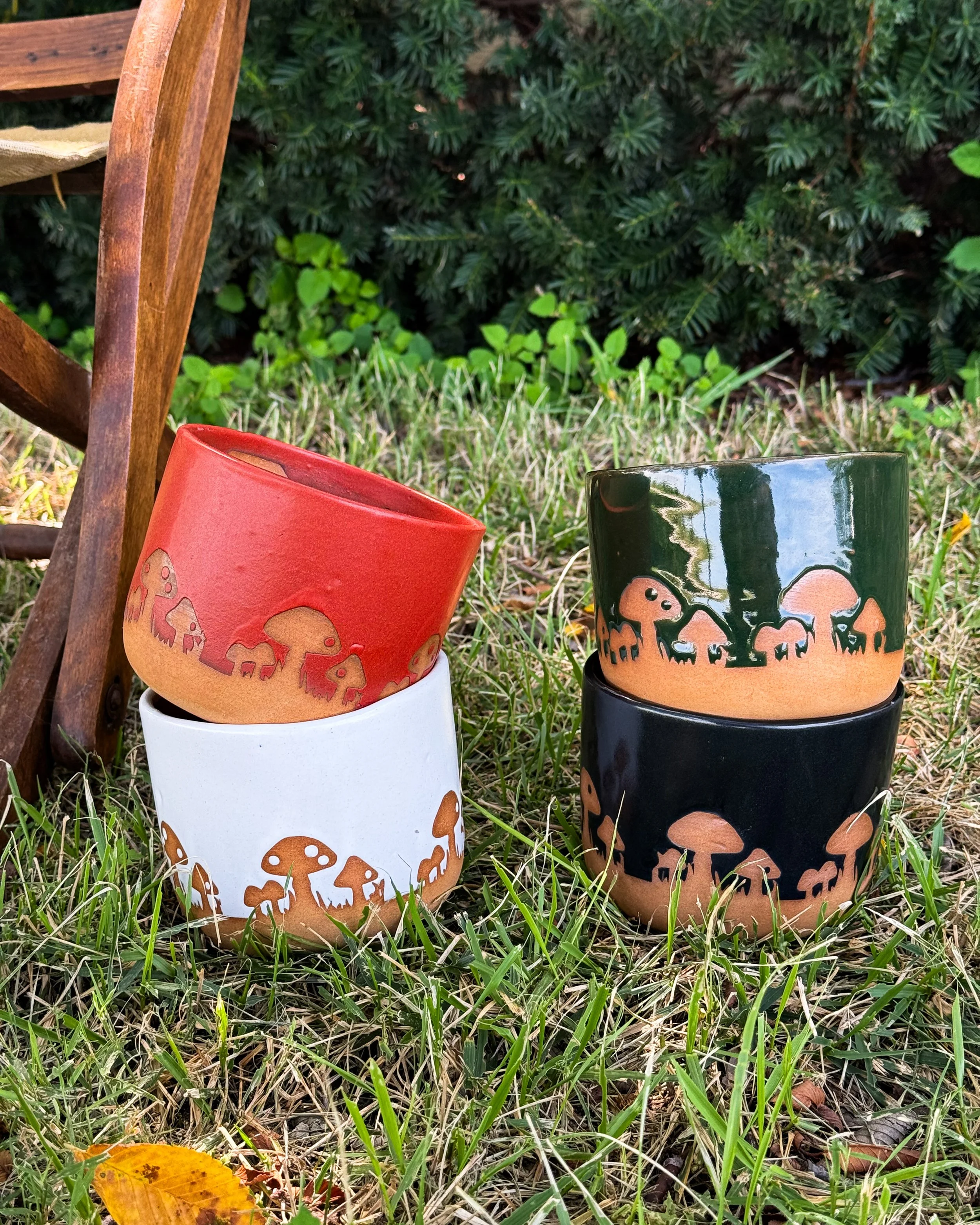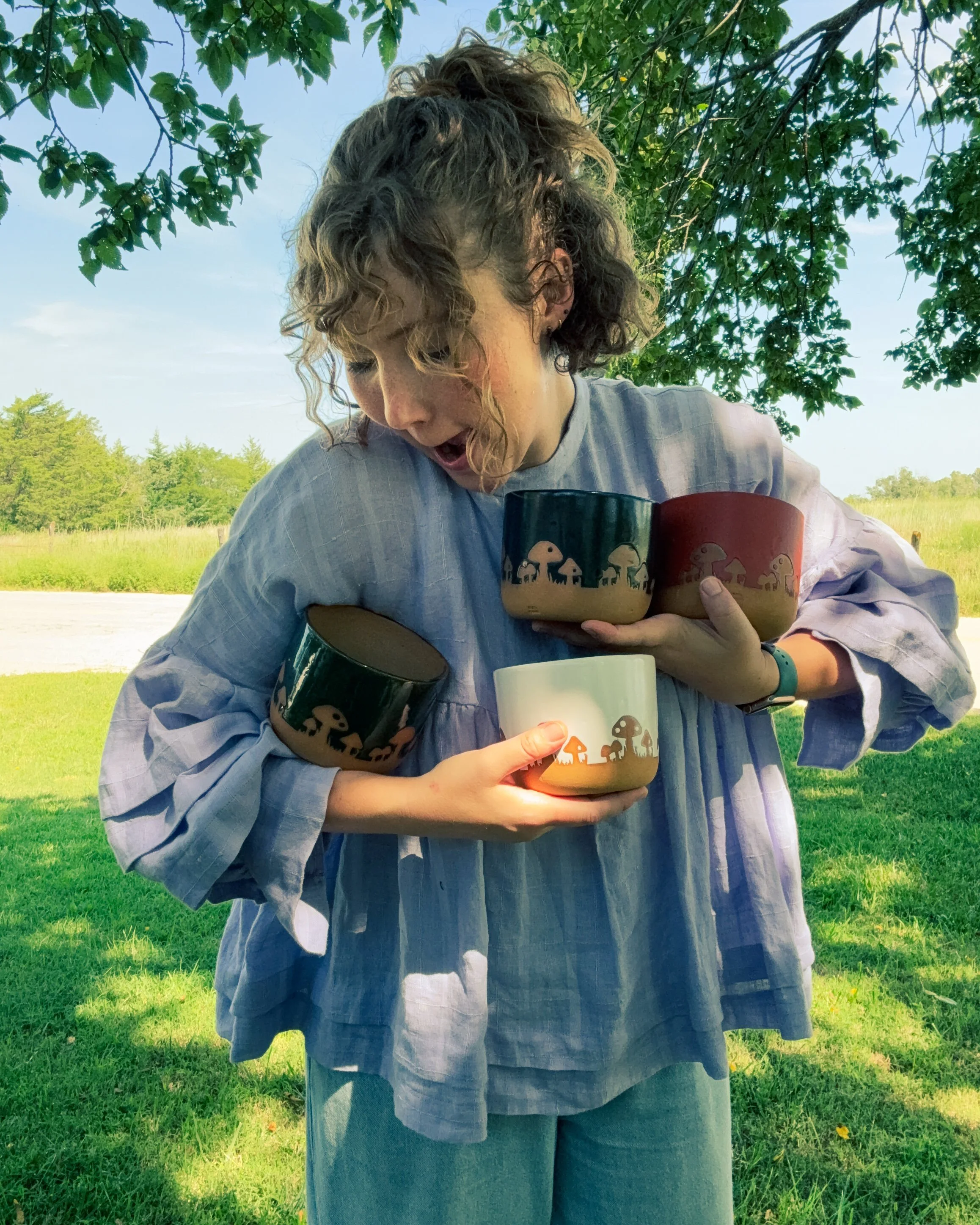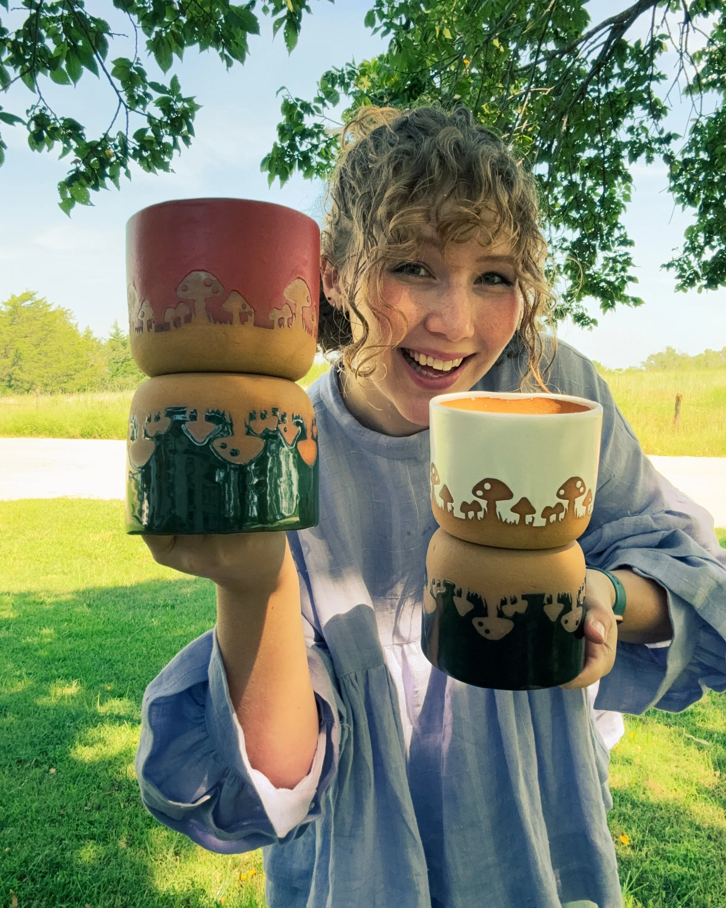 White Branch Pottery and Renata's Garden teamed up in a collaborative effort to make pots for houseplants that are pretty AND functional. This line of pottery is Kansas prairie inspired. We used wildflowers and grasses from the Flint Hills prairie to create folk art designs that also mimic the artwork of the Plant Bus! I hope you enjoy this collaboration as much as we did.